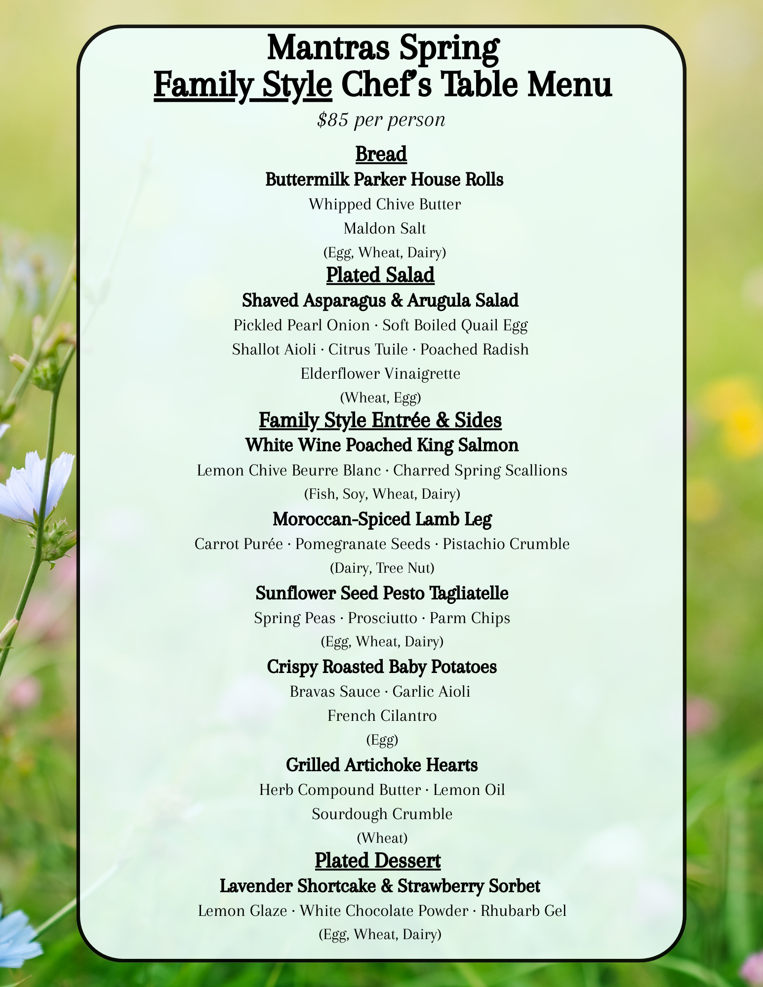 A communal feast designed for sharing, featuring generous platters of our most popular dishes. Includes plated salad, family style entree and sides, and plated dessert.