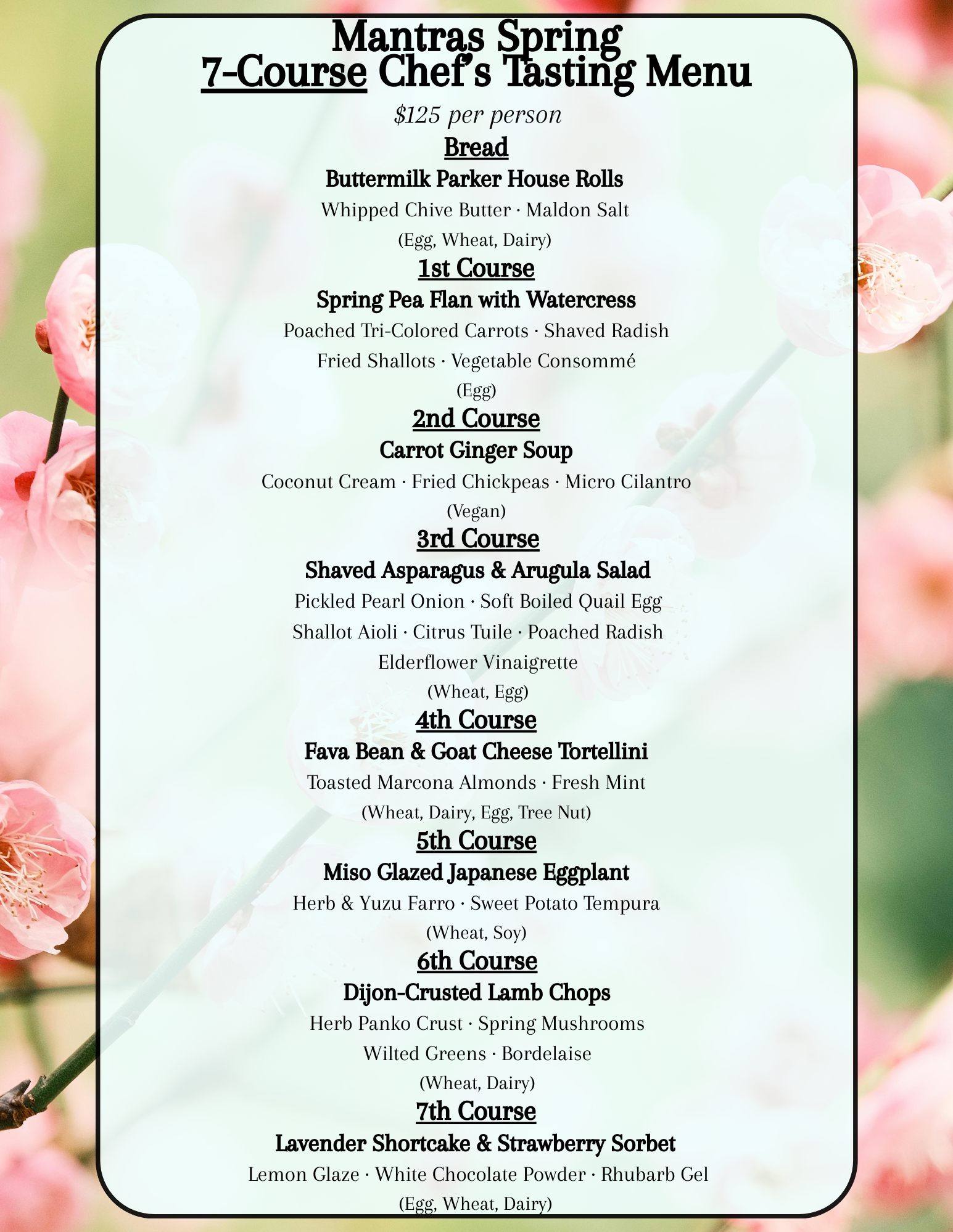 Our premier dining experience: a journey through the full spectrum of seasonal flavors and refined techniques. Includes:
